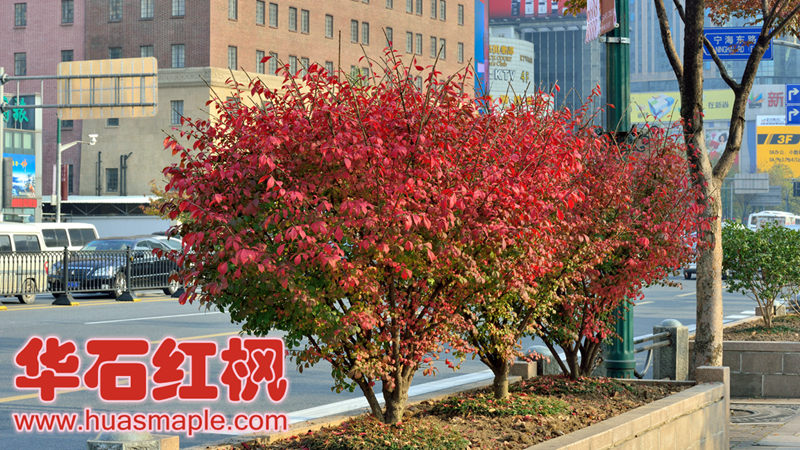 左图为上海人民广场处西藏路的火焰卫矛实景。