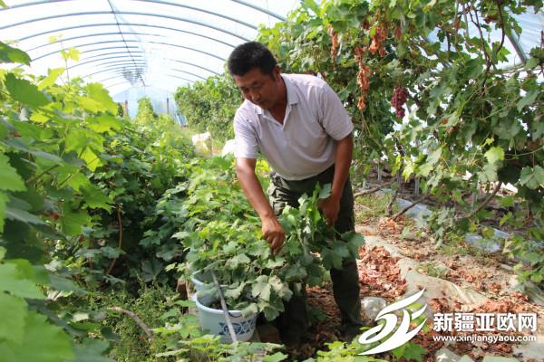 近日,在察布查尔锡伯自治县察布查尔镇蒙霍尔村村民孙贤理家的后院里,7座拱棚整齐排列,拱棚内盆栽葡萄、盆栽黑枸杞、温室葡萄长势喜人。