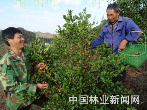 村民正在小东坞山场采摘油茶金果
