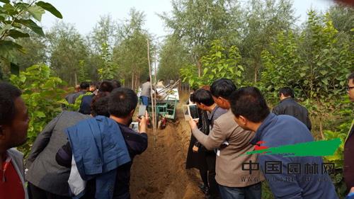 下午,与会人员现场参观了肃宁县冀红苗圃,陈段芬教授进行了苗木修剪操作演示,肃宁县苗木种植大户姚国伦展示了自己研发的植树机。